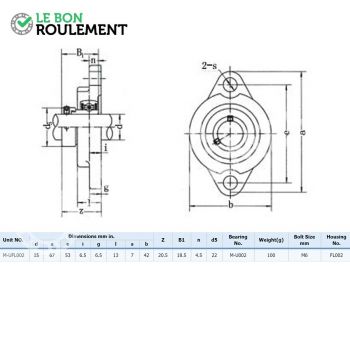 Unidad de rodamiento (aluminio) UFL002-INOX
