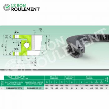 Rodamiento de orientación también llamado rodamiento de base. Marca genérica cotas 636 x 804 x 82, dentado interior ligero 1 hilera de bolas. Juego estándar y agujeros de fijación exterior e interior presillas estándar