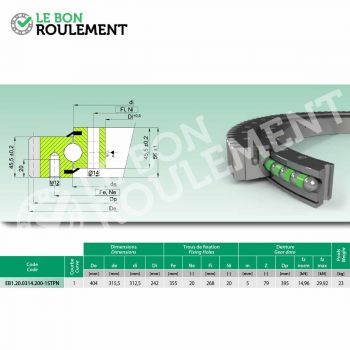 Rodamiento de orientación también llamado rodamiento de base. Marca genérica cotas 312,5 x 404 x 56, dentado exterior con collarín 1 hilera de bola... Más