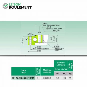 Rodamiento de orientación también llamado rodamiento de base. Marca genérica cotas 324,1 x 458 x 43, dentado interior 1 hilera de bolas. Juego estándar y agujeros de fijacións exterior y interior roscados