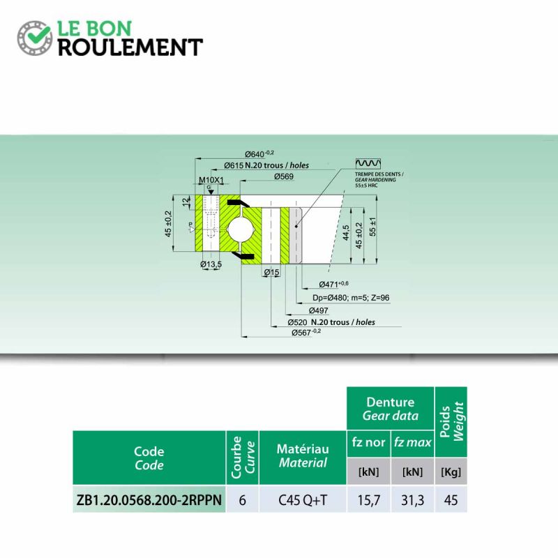 Rodamiento de orientación también llamado rodamiento de base. Marca genérica cotas 471 x 640 x 55, dentado interior 1 hilera de bolas. Juego de precisión y agujeros de fijación exterior e interior presillas estándar
