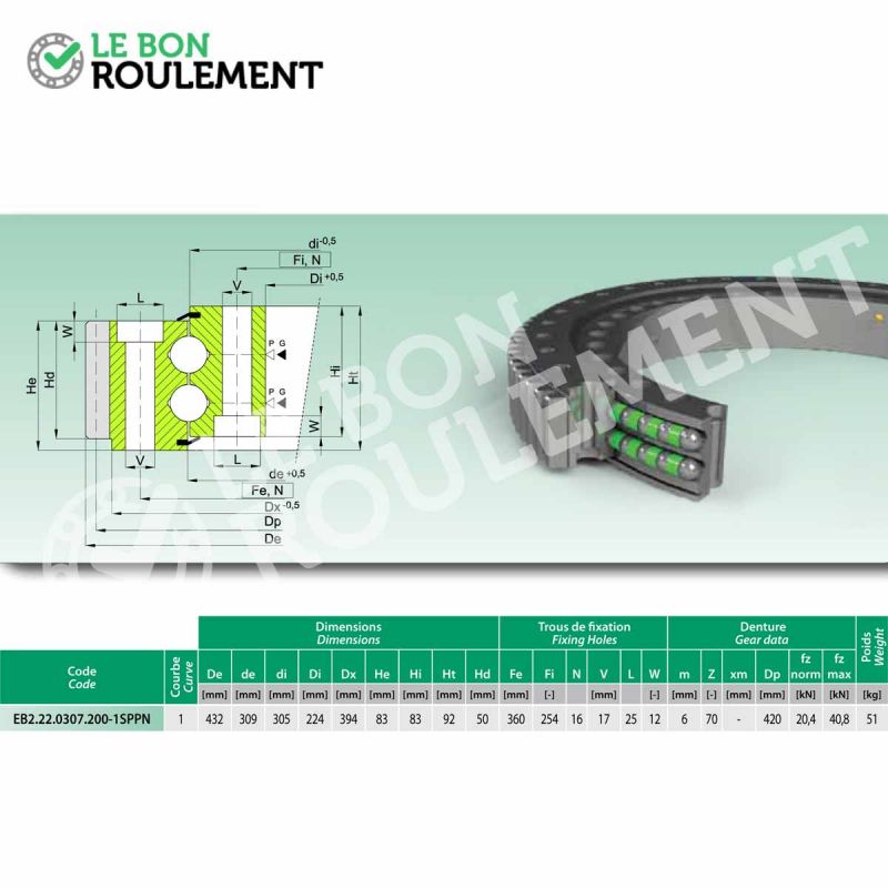 Rodamiento de orientación también llamado rodamiento de base. Marca genérica cotas 224 x 432 x 92, denture exteriore 2 rangées de billes. Juego estándar y agujeros de fijación exterior e interior presillas estándar