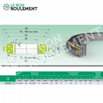 Rodamiento de precisión para mesa giratoria. Marca genérica cotas 120 x 210 x 40. Más