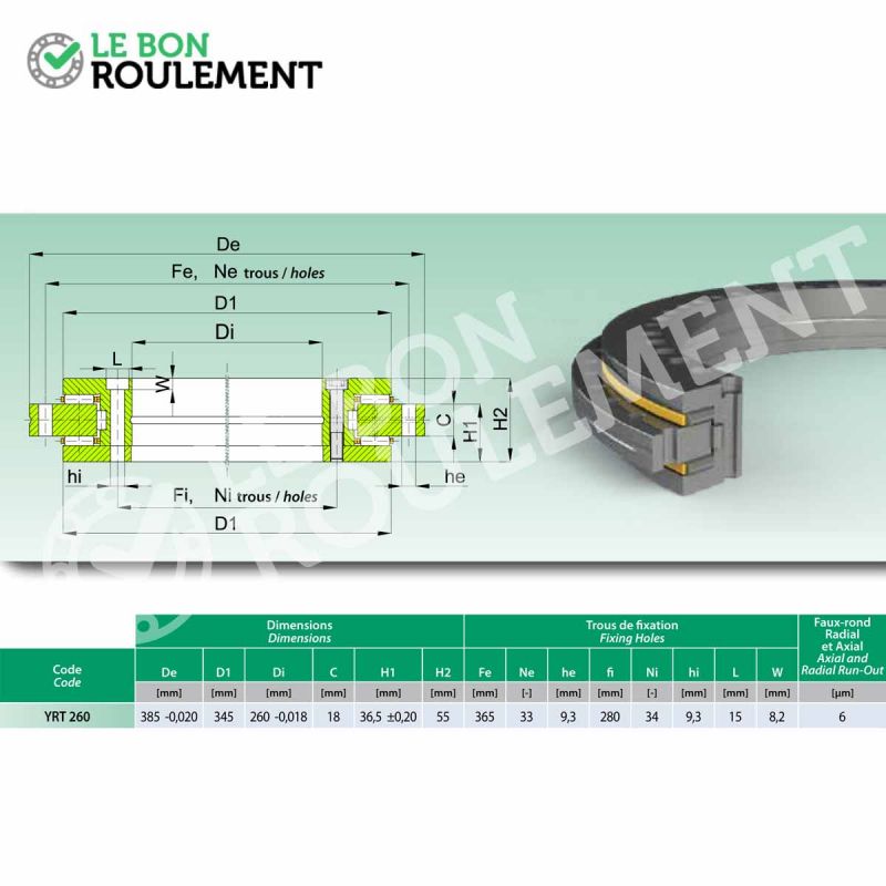 Rodamiento de precisión para mesa giratoria. Marca genérica cotas 260 x 385 x 55. Más
