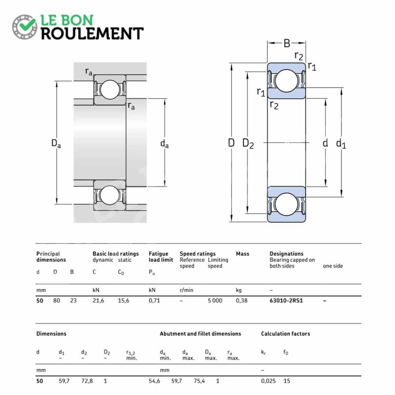 Rodamiento de bolas 63010-2RS1-SKF