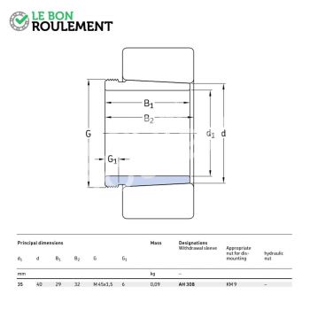 Manguito de desmontaje, de marca SKF. Se utiliza para un diámetro de eje de 35 mm. Su longitud es de 29 mm. Más
