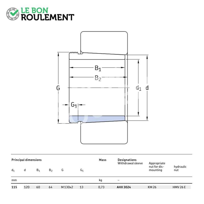 Manguito de desmontaje, de marca SKF. Se utiliza para un diámetro de eje de 115 mm. Su longitud es de 60 mm. Más