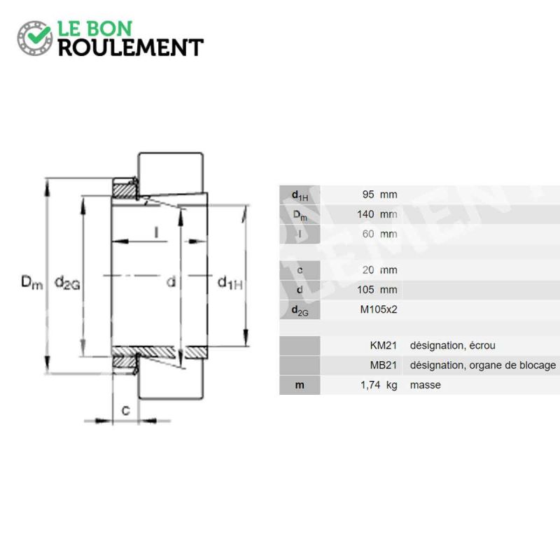 Manguito de fijación de marca FAG. Se utiliza con rodamientos que tienen un agujero cónico para un eje de 95 mm. Tiene una longitud de 60 mm. Más