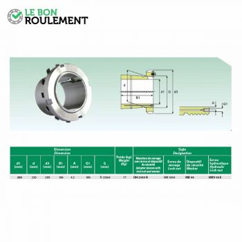 Manguito de fijación de marca genérica. Se utiliza con rodamientos que tienen un agujero cónico para un eje de 200 mm. Tiene una longitud de 186 mm. Más