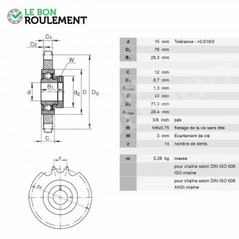 Piñón tensor de marca INA. Diámetro interior en mm 15.