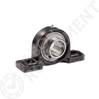 Unidad de rodamiento de pie completo de hierro fundido con rodamiento fijación con tornillos sin cabeza TIMKEN. Tiene un agujero de 85 mm y una entrevía de 247 mm.