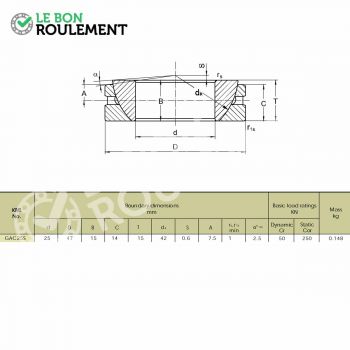 Rótula axial de contacto oblicuo, gama alta. Marca KML Bearing. Cotas en mm : 25x47x15Correspondencias con otras marcas de rótulas :Genérica : GAC2... Más