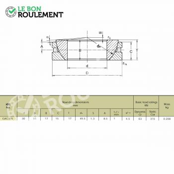 Rótula axial de contacto oblicuo, gama alta. Marca KML Bearing. Cotas en mm : 30x55x17Correspondencias con otras marcas de rótulas :Genérica : GAC3... Más