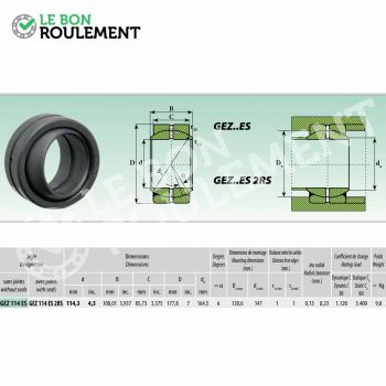 Rótula radial, de alta calidad. Marca genérica. Cotas en mm : 114,3x177,8x100,01/85,73Correspondencias con otras marcas de rótulas :SKF : GEZ408-ES... Más