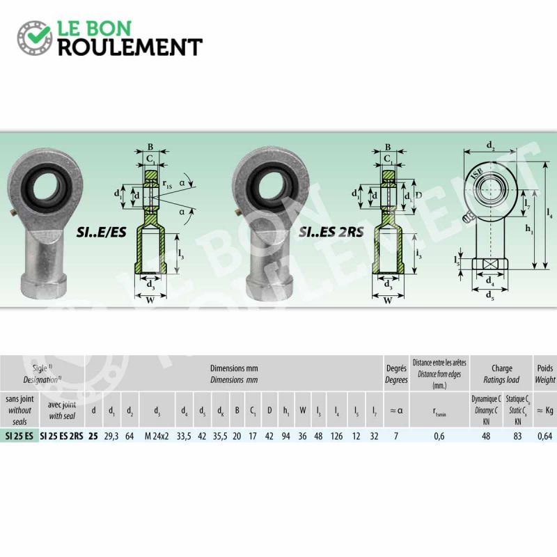 Conector de rótula, de alta calidad. Marca genérica. Roscado M24x2 con un paso a la izquierda, 2RS (resistente al agua) y con mantenimientoCorrespo... Más