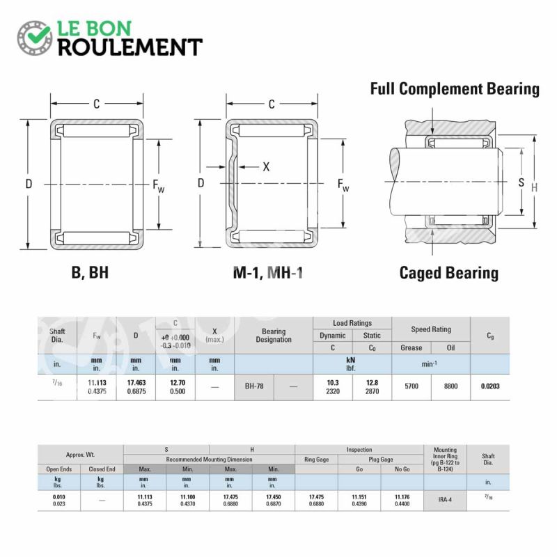 Casquillo de agujas unidas abierto KOYO. Sus cotas en mm son 11,11x17,46x12,7. No es estanco.