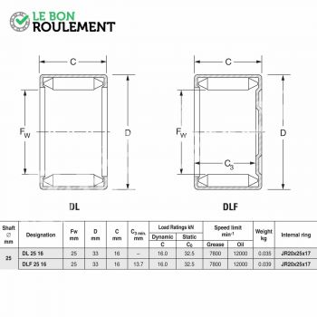 Casquillo de agujas abierto KOYO. Sus cotas en mm son 25x33x16. No es estanco. Más