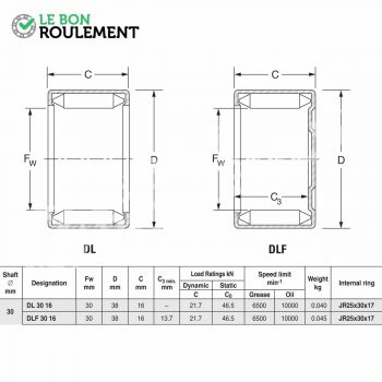 Casquillo de agujas abierto KOYO. Sus cotas en mm son 30x38x16. No es estanco. Más