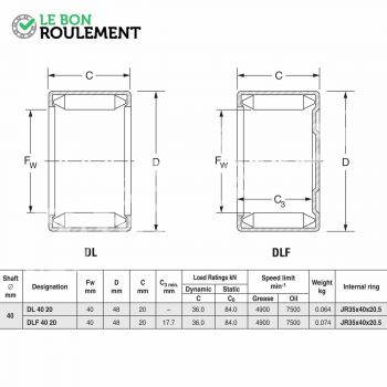 Casquillo de agujas abierto KOYO. Sus cotas en mm son 40x48x20. No es estanco. Más