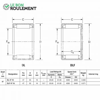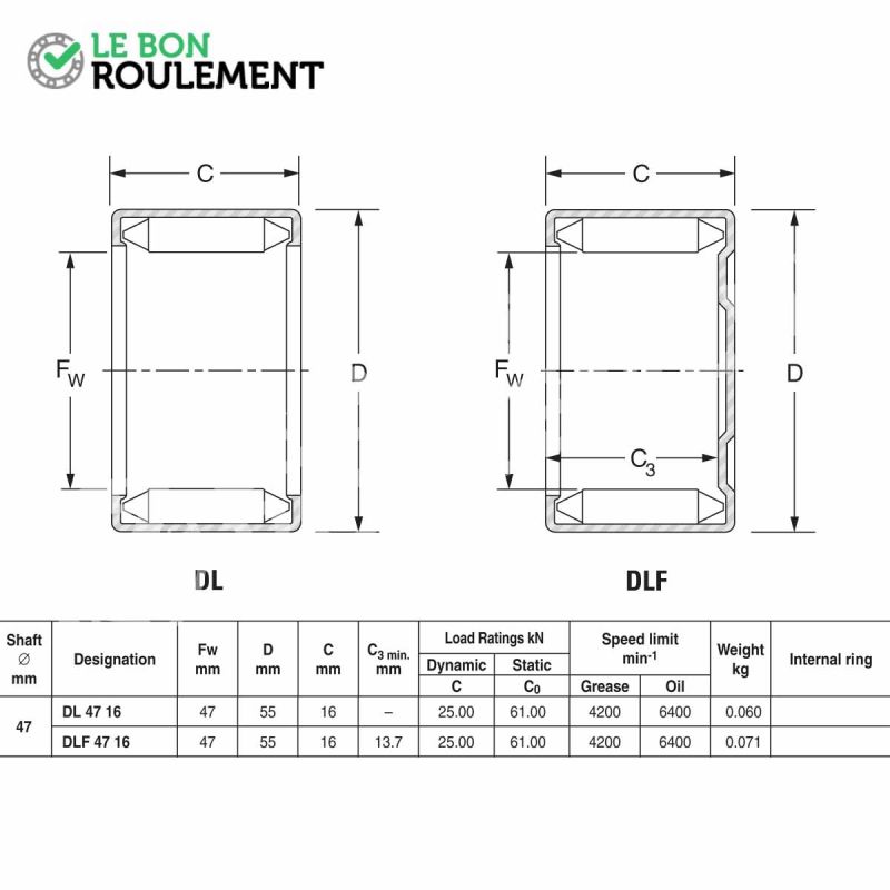 Casquillo de agujas abierto KOYO. Sus cotas en mm son 47x55x16. No es estanco. Más