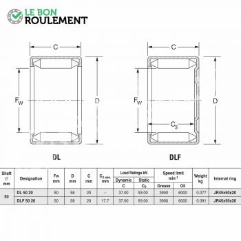Casquillo de agujas abierto KOYO. Sus cotas en mm son 50x58x20. No es estanco. Más