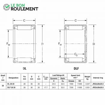 Casquillo de agujas cerrado KOYO. Sus cotas en mm son 28x36x20. No es estanco. Más