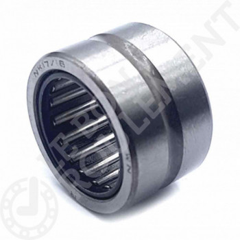 Rodamiento de agujas sin anillo interior de marca genérica. Sus cotas en mm son 17x25x16. No es estanco y la jaula que mantiene las agujas es de acero.
