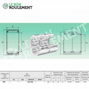 Rodamiento de agujas sin anillo interior de marca genérica. Sus cotas en mm son 165x190x40. No es estanco y la jaula que mantiene las agujas es de ... Más