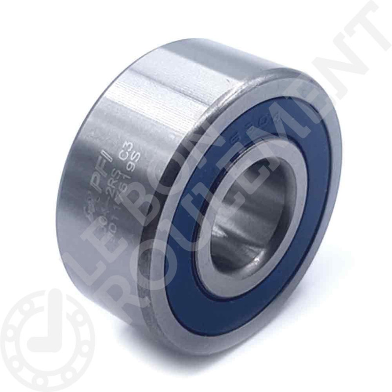 Rodamiento de bolas de contacto oblicuo genérico. Sus cotas en mm son 20x52x22,2. Posee una doble estanqueidad caucho con un juego C3 para altas velocidades y una jaula poliamida también llamada jaula plástica.