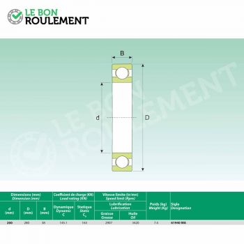 Rodamiento de bolas genérico. Sus cotas en mm son 200x280x38. No es estanco y posee un juego estándar. La jaula que mantiene las bolas es de latón ... Más