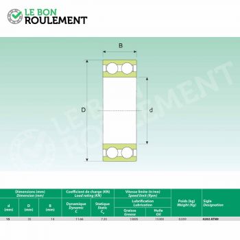 - Tipo de sellado Doble estanco plástico (2RS, 2RS1, DDU, LLU, EE)