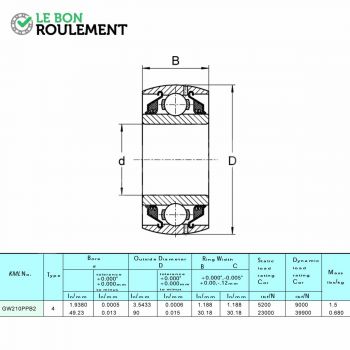 Rodamiento de bolas cilíndrico con anillo exterior abombado genérico. Sus cotas en mm son 49,23x90x30,16. Más