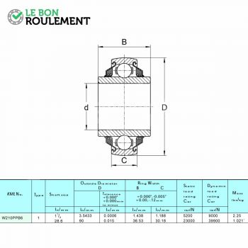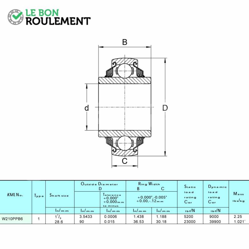 Rodamiento de bolas agujero cuadrado con anillo exterior abombado genérico. Sus cotas en mm son 28,58 / 29,97x90x36,52/30,18. Más