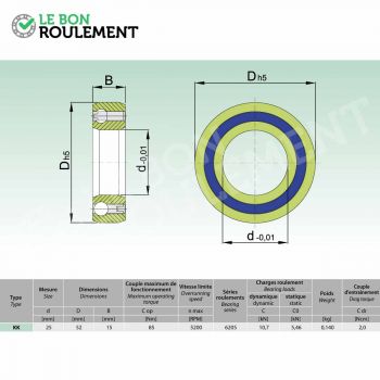 Rueda libre de rodillos sin ranura no estanco de marca genérica. Sus cotas en mm son 25x52x15.