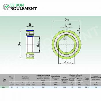 Rueda libre de rodillos con ranura sobre anillo interno y externo no estanco de marca genérica. Sus cotas en mm son 30x62x16.