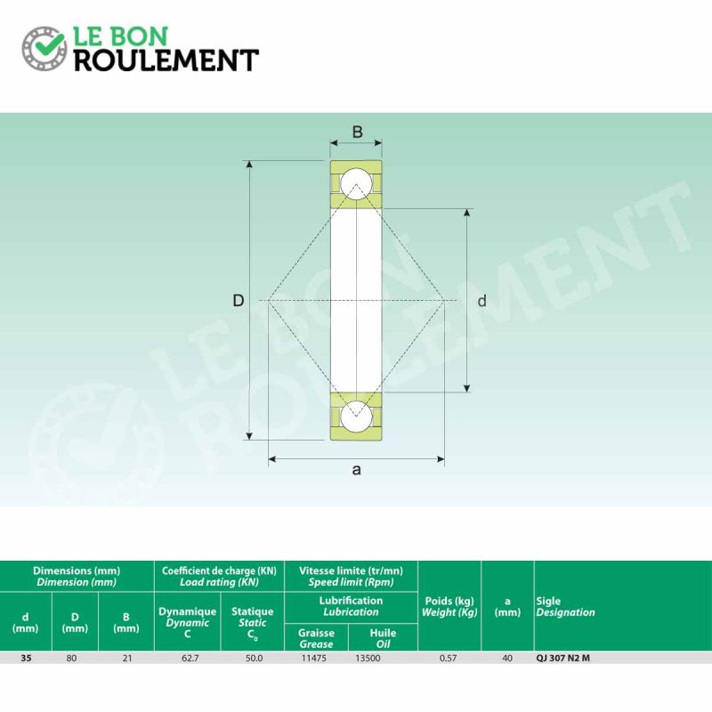 Rodamiento de bolas con cuatro puntos de contacto genérico. Sus cotas en mm son 35x80x21.Tiene un juego estándar y una jaula de latón también llamada jaula bronce.
