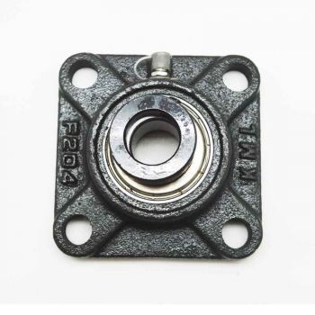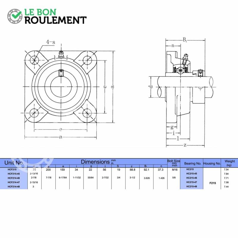 Unidad de rodamiento completo, cuadrado, de hierro fundido con rodamiento fijación con anillo excéntrico genérico. Tiene un agujero de 75 mm y una entrevía de 159 mm.