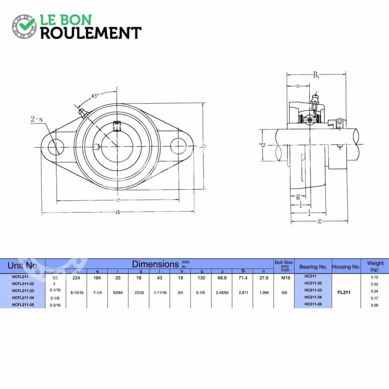 Unidad de rodamiento completo ovalado de hierro fundido con rodamiento fijación con anillo excéntrico genérico. Tiene un agujero de 55 mm y una entrevía de 184 mm.