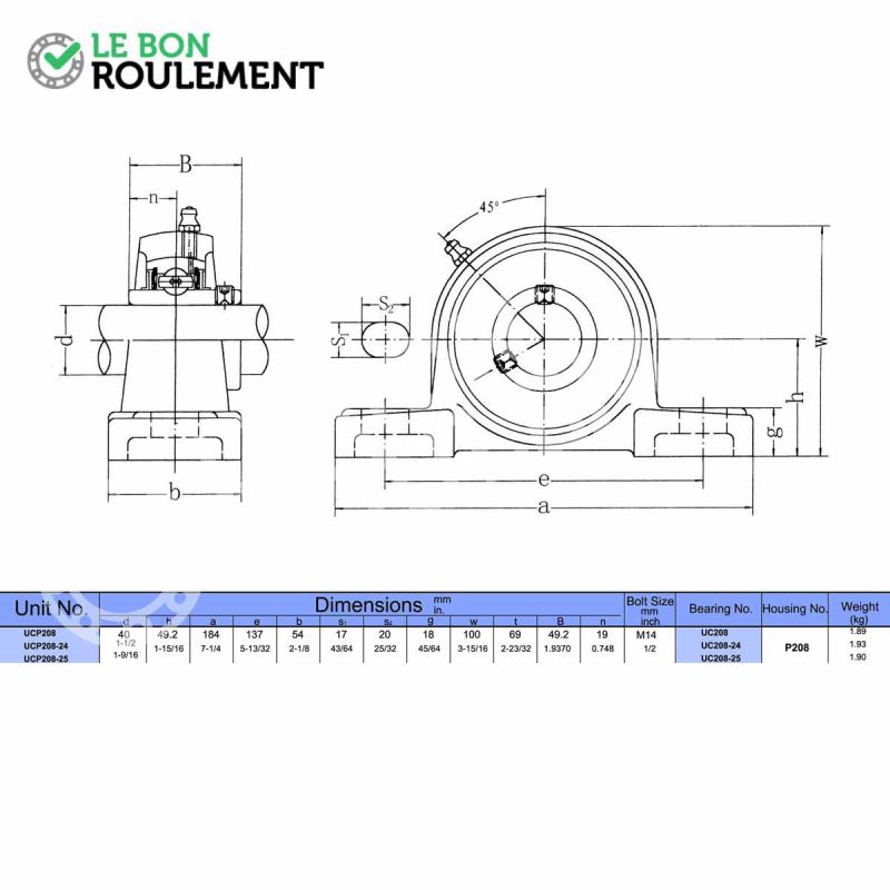 Unidad de rodamiento de pie completo de hierro fundido con rodamiento fijación con tornillos sin cabeza genérico. Tiene un agujero de 39,69 mm y una entrevía de 137 mm.