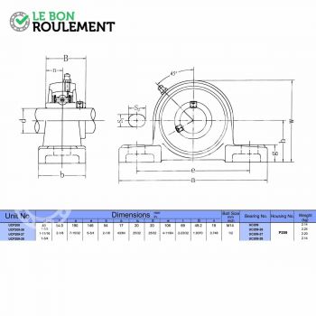 Unidad de rodamiento de pie completo de hierro fundido con rodamiento fijación con tornillos sin cabeza genérico. Tiene un agujero de 41,28 mm y una entrevía de 146 mm.