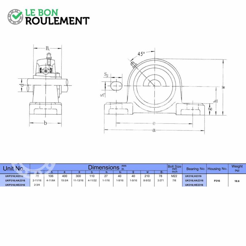 Unidad de rodamiento de pie completo de hierro fundido con rodamiento fijación con manguito genérico. Tiene un agujero de 70 mm y una entrevía de 300 mm.