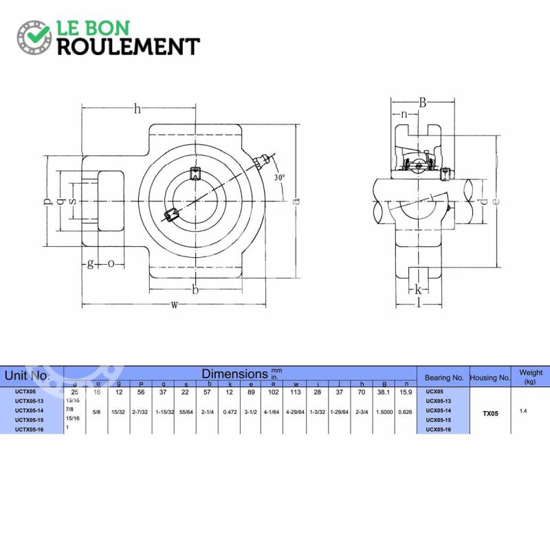 - Referencia del rodamiento UC05-INOX