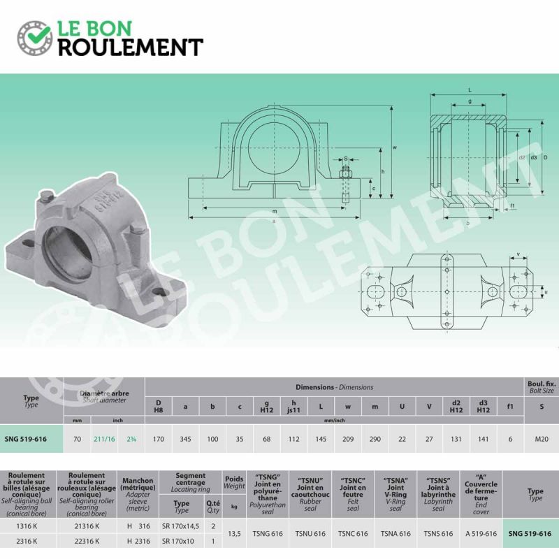 Unidad de rodamiento en dos partes SNG519-616+1316K