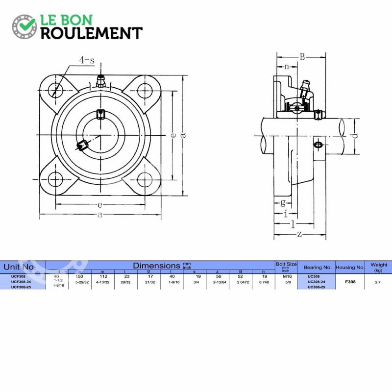 Unidad de rodamiento completo, cuadrado, de hierro fundido con rodamiento fijación con tornillos sin cabeza genérico. Tiene un agujero de 40 mm y una entrevía de 112 mm.