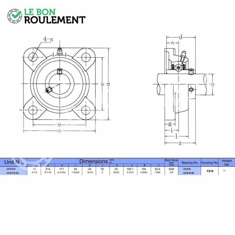 Unidad de rodamiento completo, cuadrado, de hierro fundido con rodamiento fijación con tornillos sin cabeza genérico. Tiene un agujero de 90 mm y una entrevía de 171 mm.