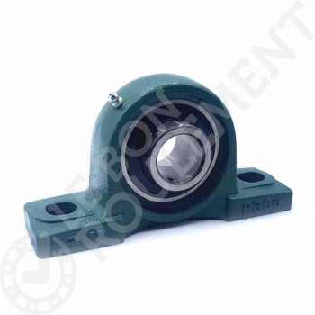 Unidad de rodamiento de pie completo de hierro fundido con rodamiento fijación con tornillos sin cabeza genérico. Tiene un agujero de 30 mm y una entrevía de 140 mm.
