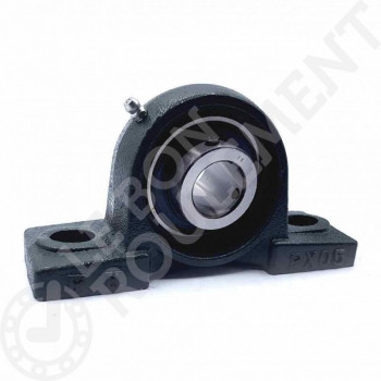 Unidad de rodamiento de pie completo de hierro fundido con rodamiento fijación con tornillos sin cabeza genérico. Tiene un agujero de 25 mm y una entrevía de 119 mm.