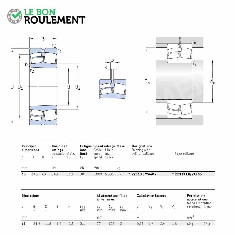 Rodamiento oscilante dos hileras de rodillos 22313-EK-VA405-SKF