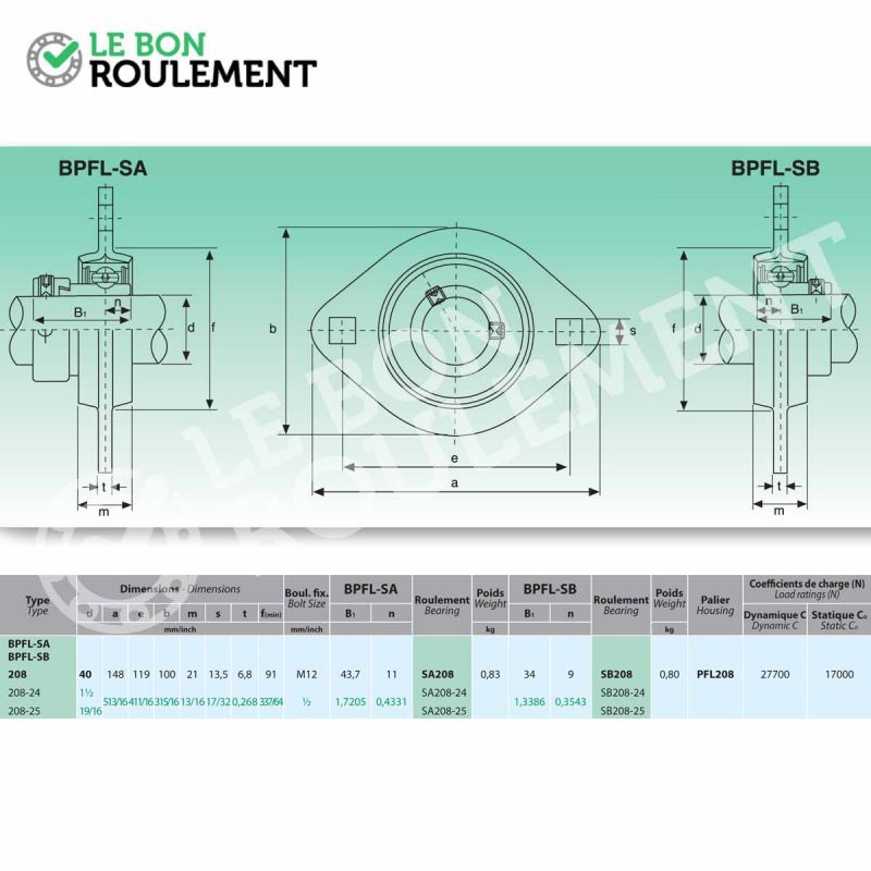 Unidad de rodamiento (chapa) SAPFL208-INOX
