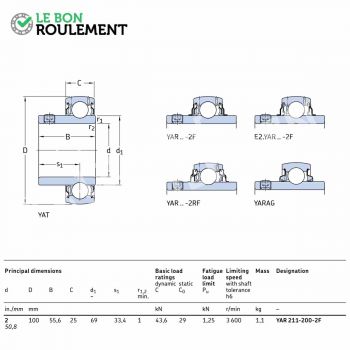 Rodamiento de soporte de marca SKF de alta calidad. Las cotas en mm son 50,8x100x55,6/25. Su jaula exterior es abombada y su fijación se hace con t... Más